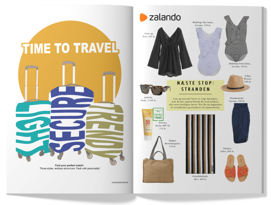 Specialudgaven af Alt for Damerne indeholder inspirerende artikler og rejsetips samt nøje udvalgte reklamer, der matcher magasinets tema. Reklamerne giver læserne forslag til produkter og tjenester – fra kufferter og ferie-mode til must-have accessories – og skaber et dynamisk og autentisk magasinlayout.
